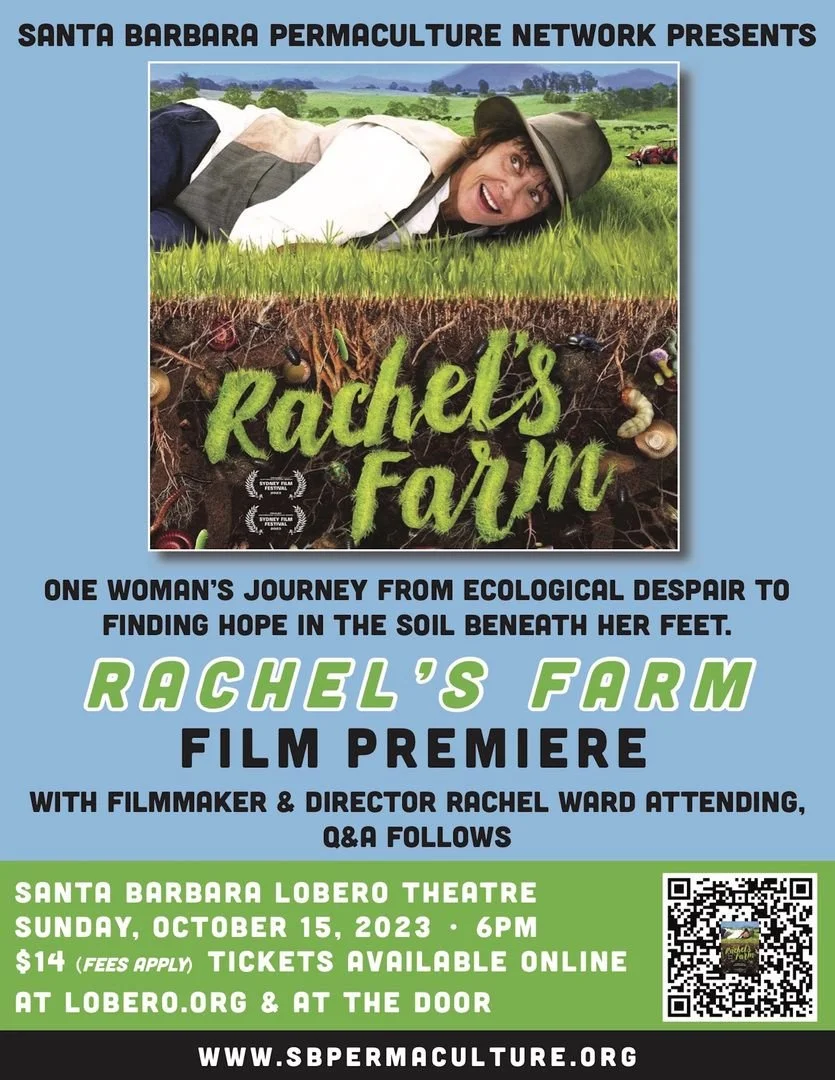 We attended the Santa Barbara premiere of Rachel’s Farm. Inspiring interviews with Rachel, her family, and her farm manager provided an insight into Rachel’s transformation from a state of willful ignorance about the ecological impacts of conventional agriculture to a regenerative agriculture success story. The film also explores the devastating fires and floods that struck Australia. The evening concluded with a Q&A session with Rachel, offering a deeper understanding of her efforts to restore the health of Australia’s farmland, food, and climate.